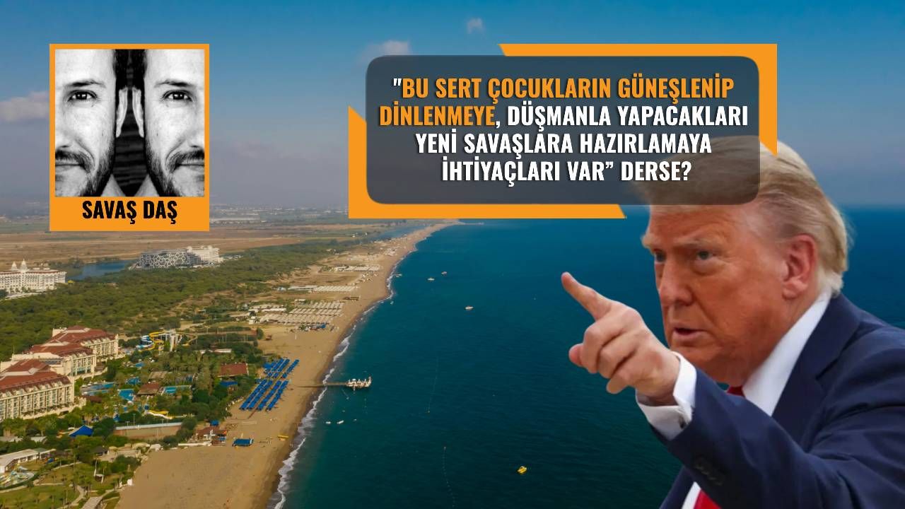 Bir an gözlerinizi kapatın ve Trump’ın “Biliyor musunuz? Türkiye’de Antalya diye harika bir yer var ve biz burayı istiyoruz. Ortadoğu’da ve Türkiye’de, tüm bölgenin güvenliğini sağlayan on binlerce askerimiz var ve bu sert çocukların güneşlenip dinlenmeye, kendilerini düşmanla yapacakları yeni savaşlara hazırlamaya ihtiyaçları var. Zaten Türkler Antalya’yı berbat bir şekilde yönetiyorlar ve kötü bir turizm yapıyorlar. Turizm işçileri çok düşük maaşlarla çalışıyorlar ve kiralarını dahi ödeyemiyorlar. Bu nedenle Başkan Erdoğan’ı aradım ve Antalya’yı ondan bizzat istedim. Umarım bu isteğimi geri çevirmez. Eğer vermek istemezse onlara çok sert bir yanıt veririm ve ekonomilerini çökertirim.” dediğini hayal edin.